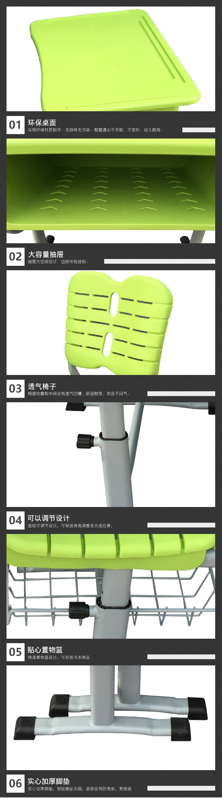 名稱:升降A(chǔ)BS塑鋼課桌椅